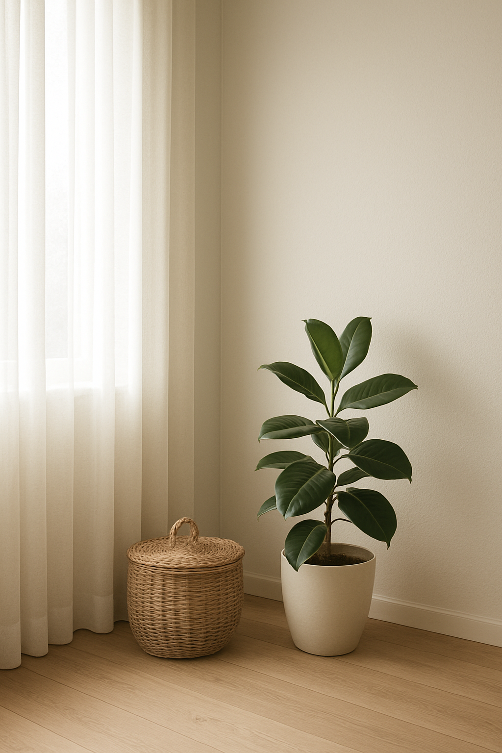 To prevent a minimalist bedroom from feeling cold, add natural elements like a rattan pendant lamp, wooden flooring, or a wicker basket. These touches balance the sleekness of modern furniture with organic warmth.